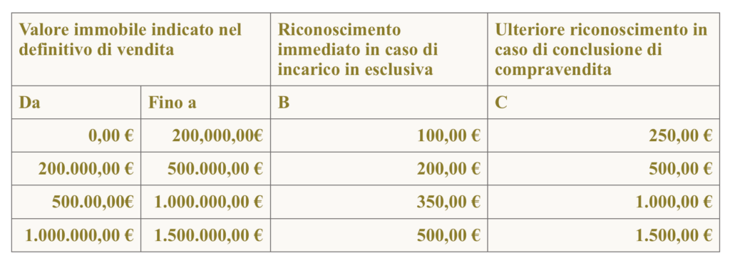 - Una volta che la trattativa sarà conclusa a al rogito di vendita riceverai un ulteriore compenso entro 8 giorni (indicato nella colonna C).